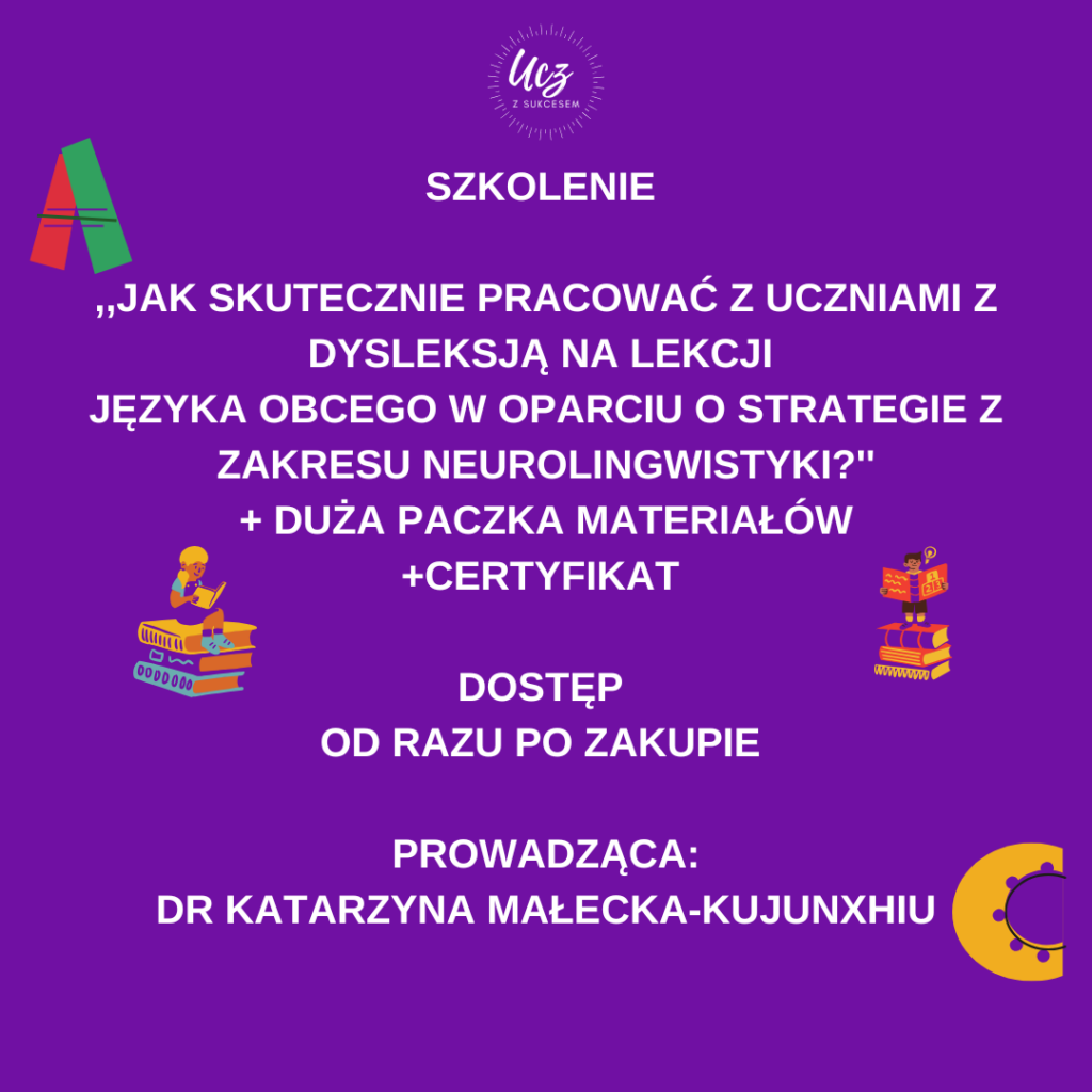 Dlatego też stworzyłam Wyjątkowe Szkolenie dla Nauczycieli/Lektorów Języków Obcych ,,Jak skutecznie pracować z Uczniami z dysleksją na lekcji języka obcego z wykorzystaniem strategii z zakresu neurolingwistyki?”,gdzie dzielę się z Tobą swoją wiedzą oraz ponad 20-letnim doświadczeniem.